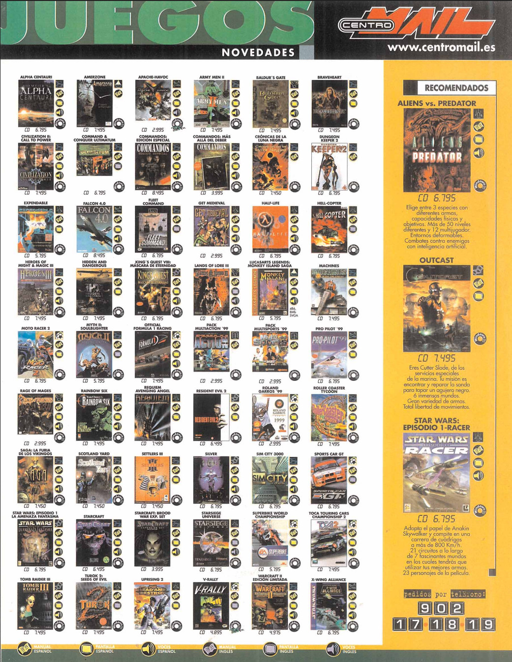 Escoge sabiamente entre este gran catálogo de Micromania y PCMania de 1999.