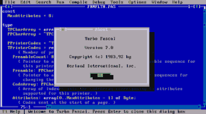 Este compilador ya no trabaja sobre C si no con el lenguaje Pascal. Permite desarrollar tanto en modo texto como crearte tus rutinas gráficas en modo 13h. Genera ejecutables para DOS.